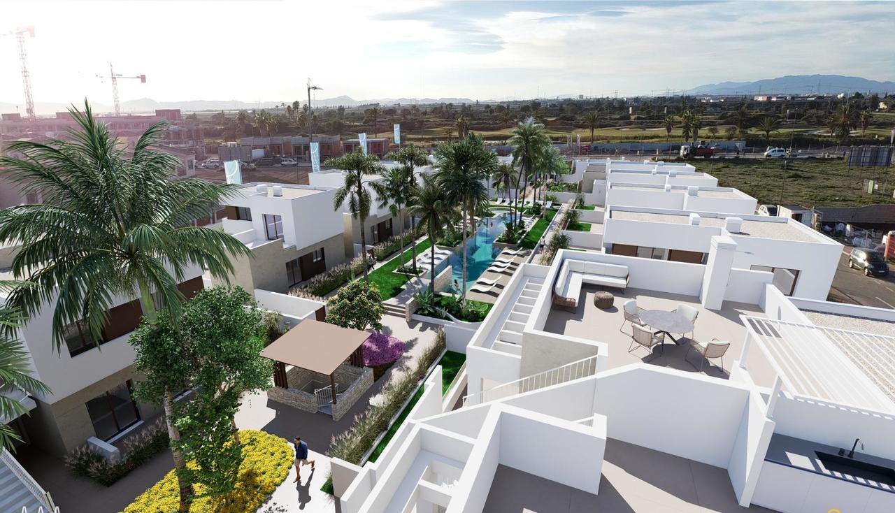 Exclusive Villas and Bungalows on the Costa Cálida – Design, Comfort and Privileged Location A Project that Fuses Privacy and Community Living Discover a new residential concept on the Costa Cálida, designed for those seeking the perfect combination of privacy, comfort and social life. This exclusive complex offers detached villas and bungalows, with access to spacious communal areas and a communal swimming pool, providing the best of both worlds: the tranquillity of a private home and the comfort of shared spaces to enjoy with friends, family and neighbours. All homes include a parking space and storage room in the basement, guaranteeing security and convenience for residents. Modern Design and Personalisation Options This development offers a wide range of homes to suit different needs and lifestyles: Ground floor bungalows with private gardens up to 122 m². Top floor bungalows with large terraces and private solarium. One or two-storey detached villas, with plots ranging from 201 to 356 m² and different layout and finishing options. Each home is designed to maximise natural light, creating spacious and welcoming spaces. The master suite has been carefully conceived to guarantee privacy and comfort, completely separating the sleeping area from the bathroom, avoiding interruptions of light or noise during the night. Quality and Sustainability in Every Detail These homes have been built with high quality materials and equipped with sustainable technologies, such as solar panels and aerothermics, to improve energy efficiency. Outstanding features: Motorised blinds in bedrooms. Armoured front door for greater security. Pre-installation of ducted air conditioning. Modern bathrooms with tempered glass partitions and suspended furniture with LED mirror. Strategic Location in Los Alcázares Situated just a few metres from the prestigious Serena Golf course and 1 km from the beaches of the Mar Menor, this complex enjoys a privileged location in Los Alcázares, one of the most promising areas of the Costa Cálida. In addition, its easy access to the AP-7 motorway allows quick connection to other destinations in the region and facilitates access to essential services such as supermarkets, sports centres, schools and pharmacies. Distances to Points of Interest La Serena Golf – 1 km (2 minutes by car). Mar Menor Beach – 1 km (2 minutes by car or 10 minutes walk). Murcia Airport – 35 km (30 minutes by car). Cartagena Port – 22 km (20 minutes by car). Local shopping centre – 3 km (5 minutes by car). A Mediterranean Lifestyle with High Profitability This project not only represents an excellent option to enjoy the Mediterranean lifestyle, but it is also a safe investment in a growing area. Don’t miss out on this unique opportunity. Contact us today for more information and to reserve your ideal home on the Costa Cálida.