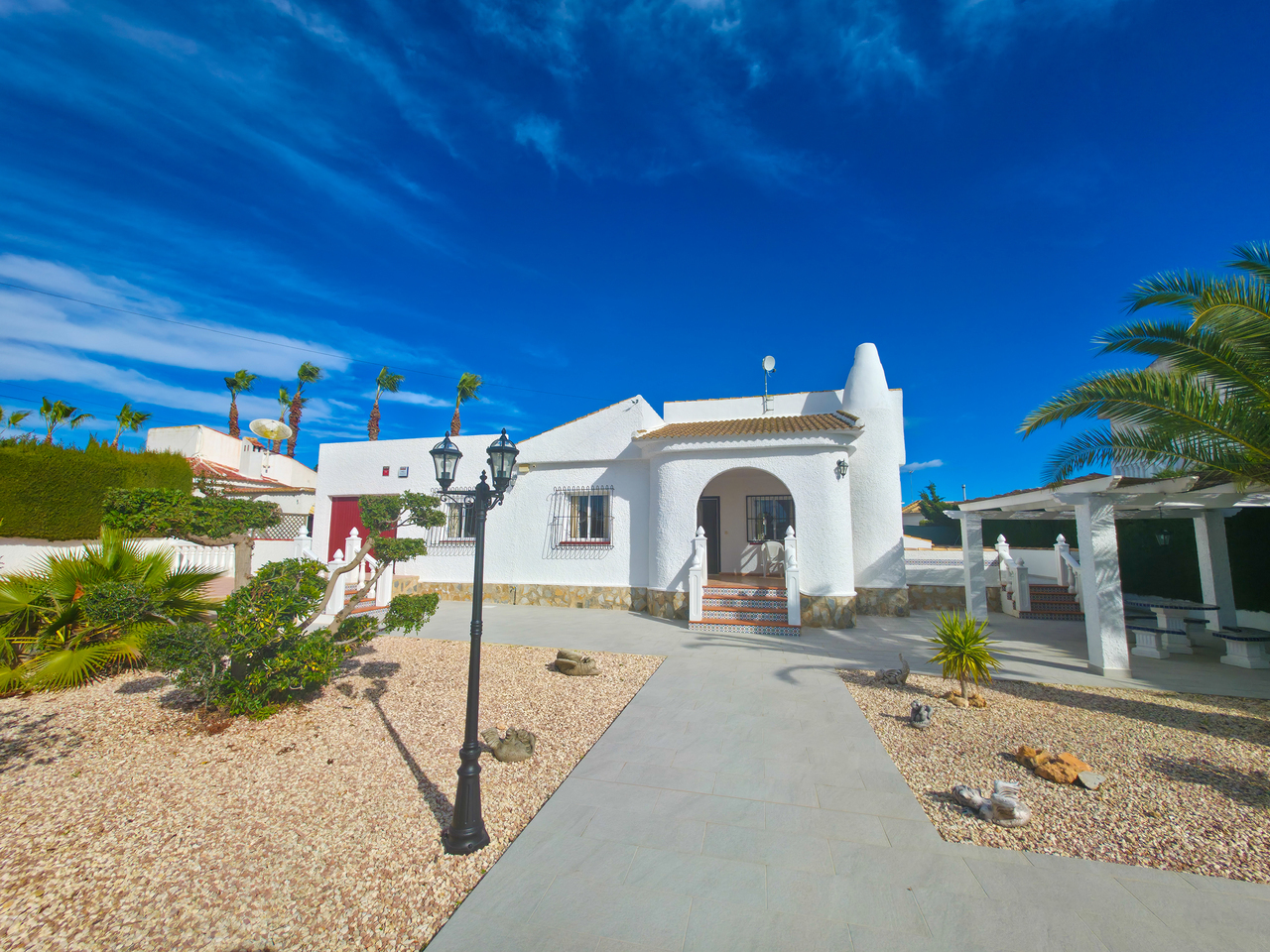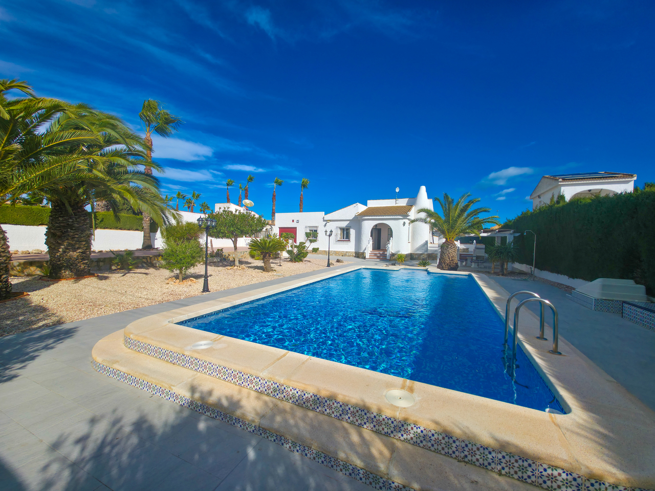 We are delighted to present this impressive four-bedroom villa located in the highly desirable area of San Luis. Situated on a 900m² plot, the property features a spacious, air conditioned, open-plan lounge, kitchen and dining area, four bedrooms with built-in wardrobes, three bathrooms, (master with ensuite) a 57m² swimming pool, driveway and garage. The villa offers extensive outdoor spaces, including sunbathing areas and shaded zones for comfort throughout the day. Both the villa and its grounds are in excellent condition, having been meticulously maintained by the current owner. The property occupies a prime location, offering convenient access to a full range of amenities within walking distance. Additionally, it is well served by public transportation links for those requiring travel further afield.The villa will be sold furnished and benefits from air conditioning, double glazing, alarm system, security shutters & grills, ceiling fans and storage facilities.With an active Tourist Licence, the property has proven to be a successful holiday rental. Due to existing bookings and family commitments, completion of the sale can be scheduled for September 2026.